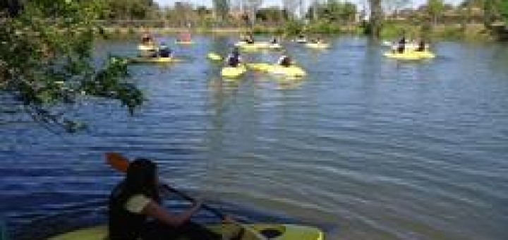 Los estudiantes de 4º de ESO disfrutan de un campamento de Actividades Deportivas en la naturaleza. Se desarrolla en Hornachos, en la finca «La Fuentecilla». Entre otras actividades, están aprendiendo a navegar en kayak.