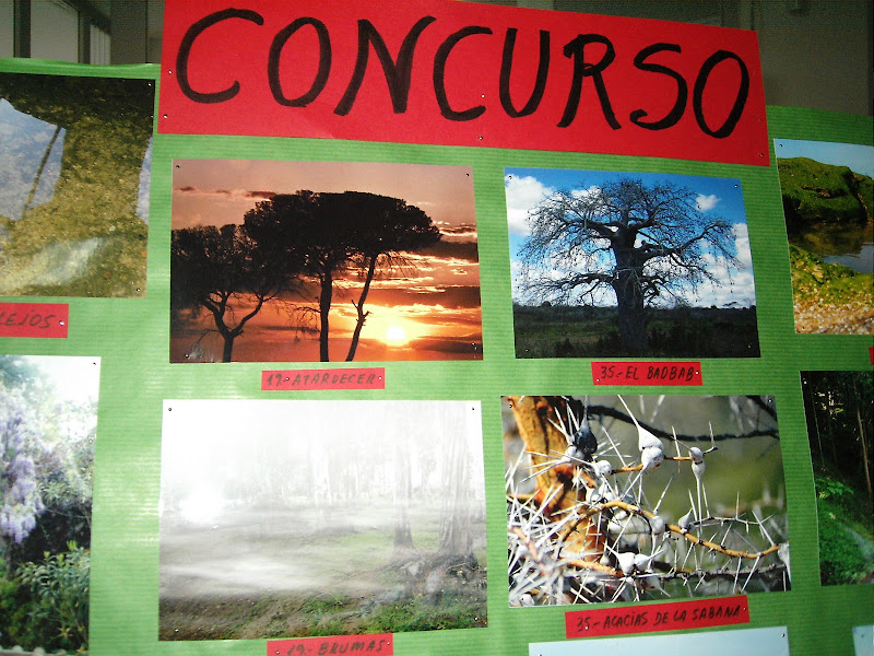 Se acerca el final del curso y múltiples trabajos realizados durante el año se asoman a la entrada del centro en diversas exposiciones. Aquí tenéis una imagen de las fotos presentadas al concurso que sobre fotografía de la Naturaleza organiza el departamento de Ciencias Naturales.