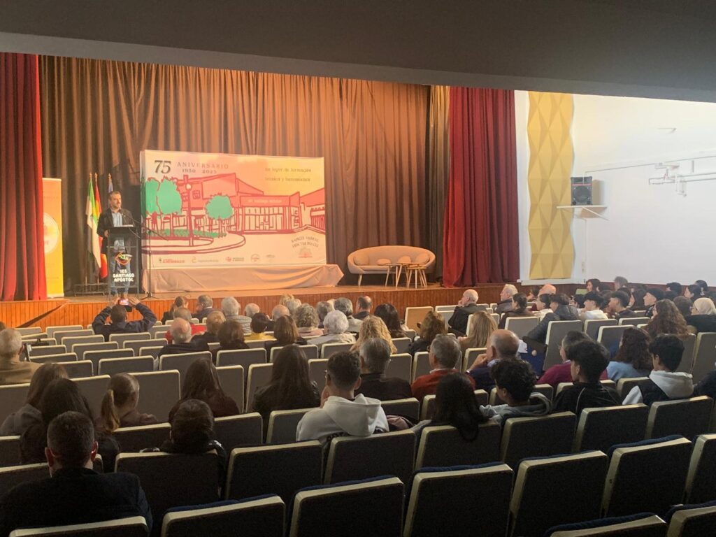 En la mañana del viernes 14 de noviembre el IES Santiago Apóstol ha celebrado el acto de inauguración de las conmemoraciones del 75 aniversario de la creación del centro.