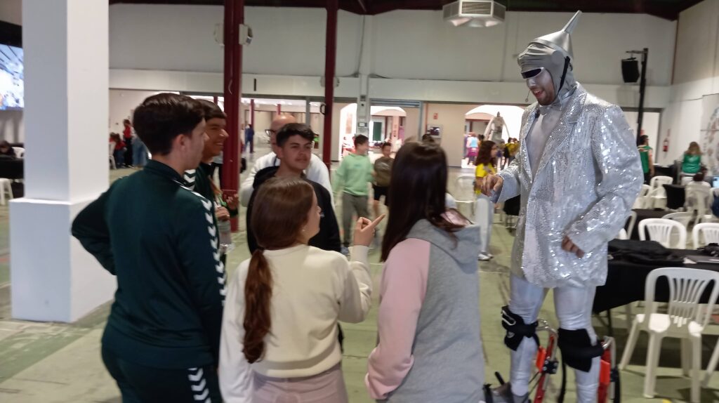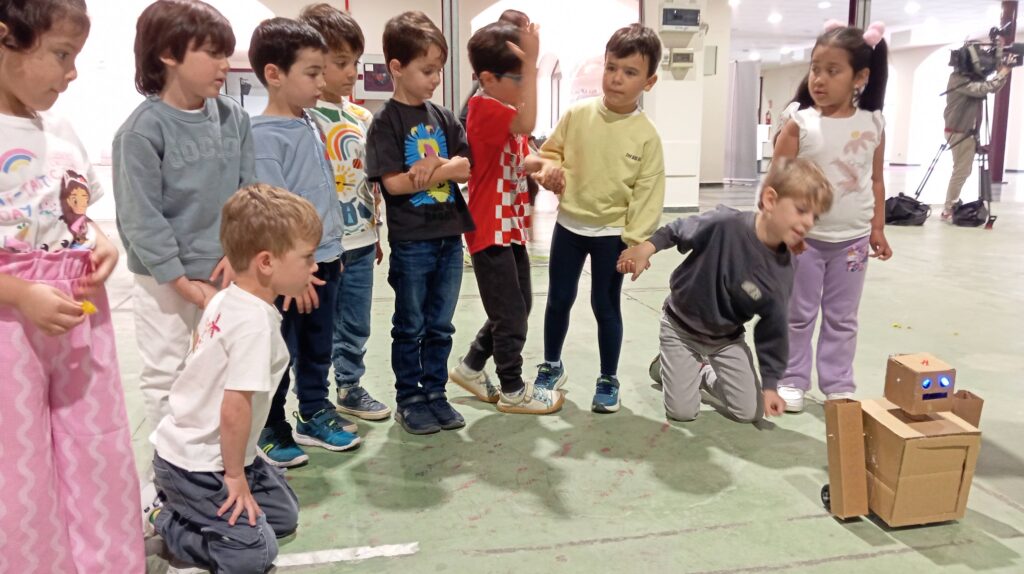 También han acudido Iker Gómez, Mirko Ramos y Alejandro Pozo, de 4º E, a pasear el robot que han diseñado y construido. A los pequeños les ha encantado: